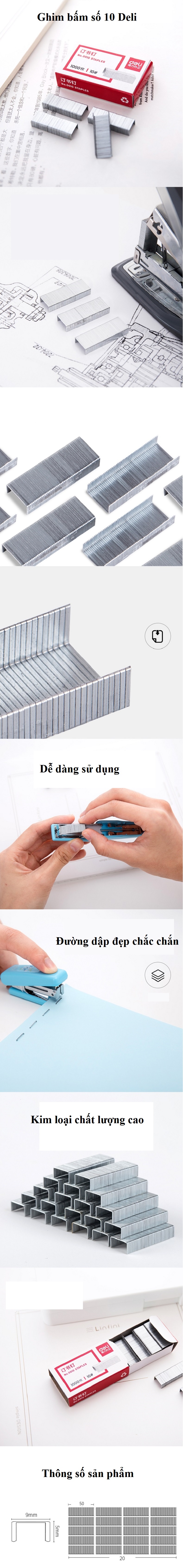 Kim bấm Deli 10# 0010 Hàng nhập khẩu. Kim bấm Deli dùng để bấm giữ giấy tờ, tài liệu trong công việc văn phòng và học tập, được làm từ kim loại chất lượng cao, phủ lớp niken chống gỉ, kiểu dáng đơn...