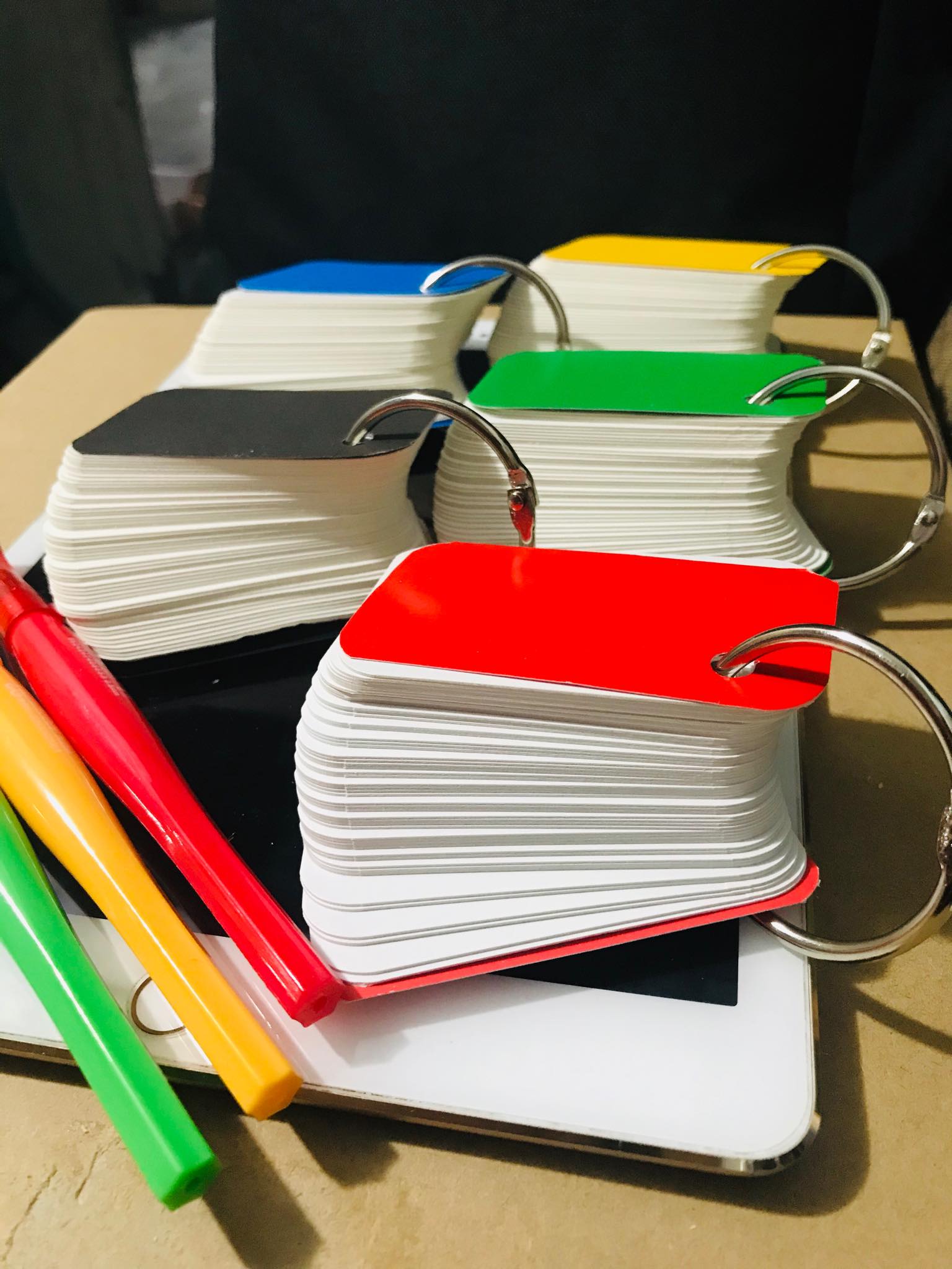 Bộ thẻ ghi nhớFlashcard 100 thẻ flashcard trắng học từ vựng Anh Nhật Hàn Trung bo góc kèm khoen + BÌA CỨNG 3D Bộ thẻ học từ vựng trắng tiếng Anh- Trung-Nhật-Hàn Công dụng : Rất tiện nghi và dễ sử dụng, bạn có thể áp dụng biện pháp ghi chép chính tả sau đó dùng phương pháp gợi nhớ bằng cách đi đâu cũng mang theo, rảnh ra là học, học mọi lúc mọi nơi, trên xe bus, trong lúc chờ đợi, tận dụng hết thời gian trống có thể. Ghi nhớ thường xuyên - liên tục - liên liên liên tục -->> Từ vựng đó dễ ngấm hơn, nhớ lâu hơn. Một mặt bạn viết từ Tiếng Anh, Trung, Nhât,.. và phiên âm, Cụm từ dùng kèm hoặc một câu ví dụ ngắn.