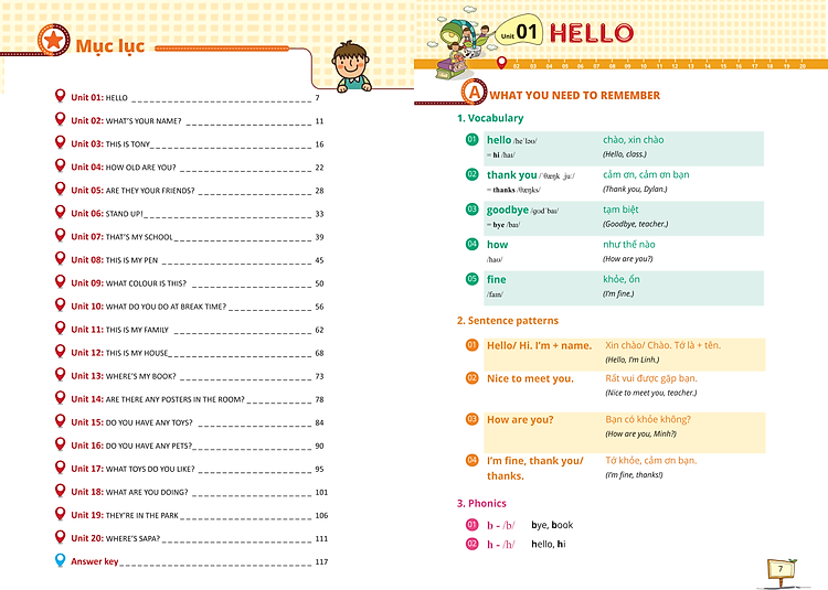 Phần lý thuyết ngắn gọn, giúp các em ôn tập toàn bộ kiến thức từ vựng, cấu trúc và ngữ âm theo mỗi unit trên lớp