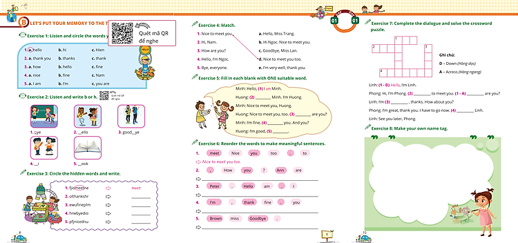 Các bài tập nghe được tích hợp mã QR, chỉ cần sử dụng điện thoại hoặc máy tính bảng để quét mã và nghe. Các em sẽ được nghe và làm quen với tiếng Anh chuẩn ngay từ những bài thực hành nhỏ như thế.