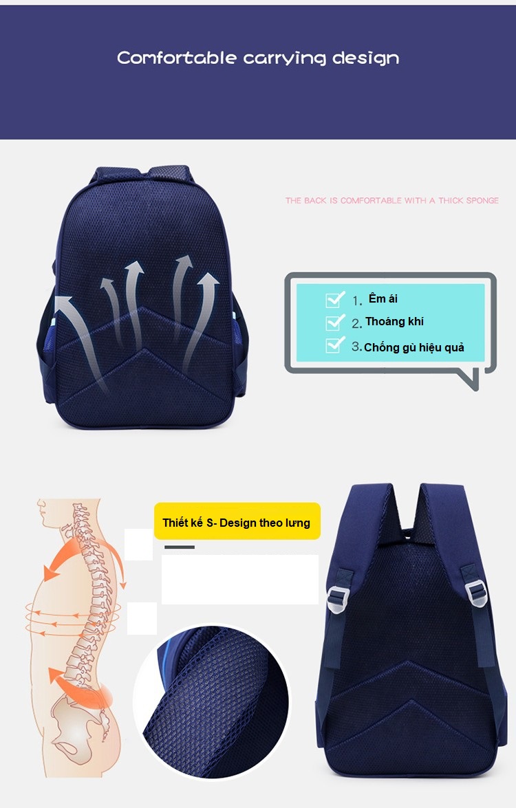 – Cặp có form hộp ,thiết kế với cấu tạo phù hợp với đường cột sống của bé, cơ chế chống gù hiệu quả.