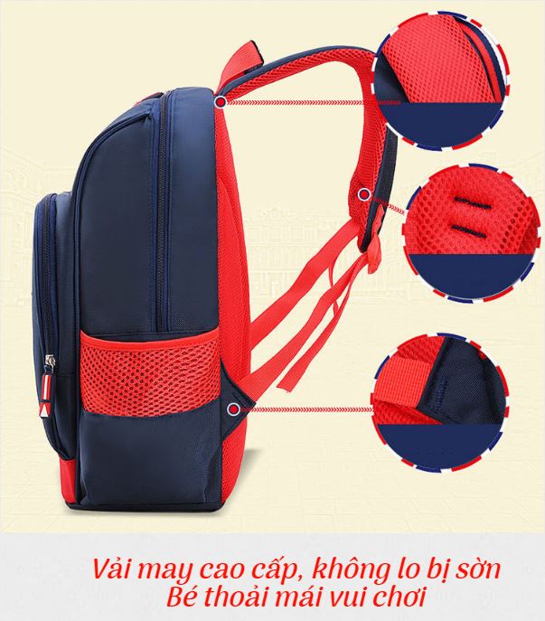 Đường chỉ chắc chắnThiết kế thoáng khíVạch phản quangChống thấm nướcKích thước: 42x16x31cmTrọng lượng: 0.7kgChất liệu: Vải PESố ngăn: 2 ngăn rộng rãiNgăn chứa đồ rộng rãi, thoải mái đểđồ của béPhù...