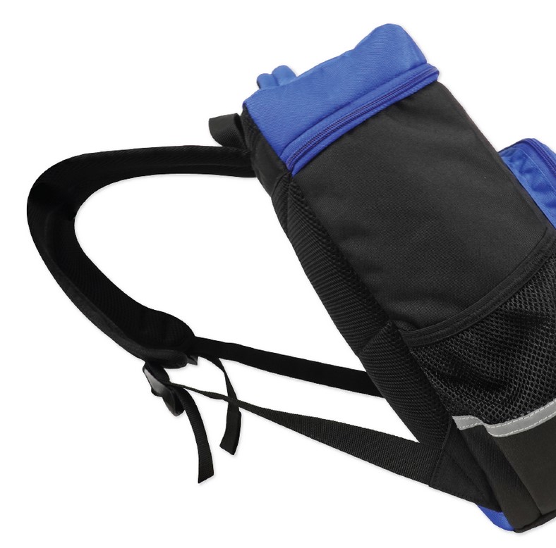Balo gồm 1 ngăn chính, 2 ngăn phụ phía trước và 2 túi lưới bên hông.