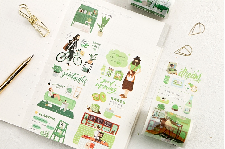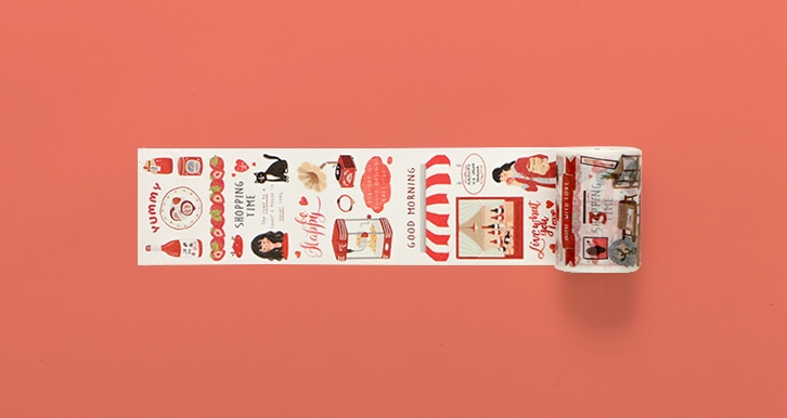 Những cuộn băng keo được thiết kế từ loại giấy washi truyền thống in trên mình những họa tiết vô cùng dễ thương xoay quanh chủ đề cuộc sống hàng ngày.