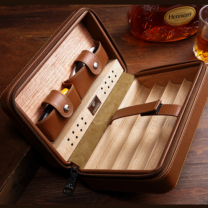 Bao da đựng Cigar cao cấp (kt 20x13x6cm) Giao màu ngẫu nhiên
