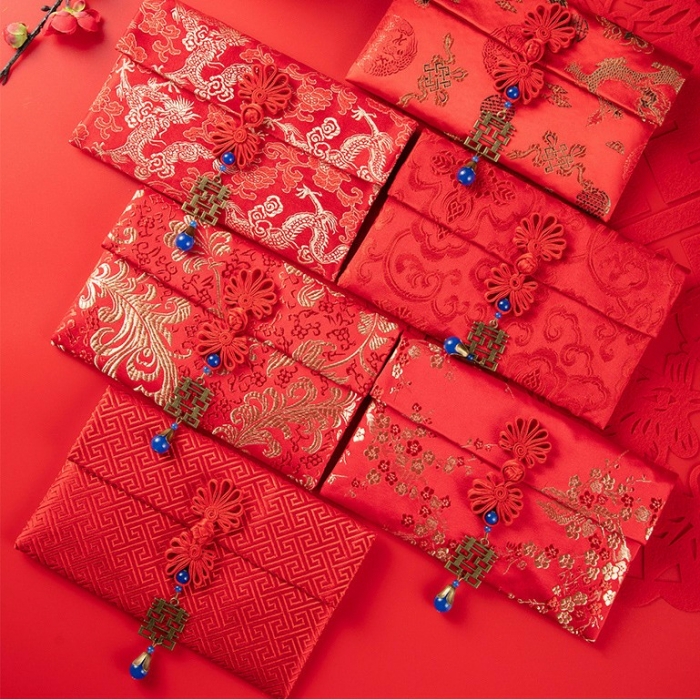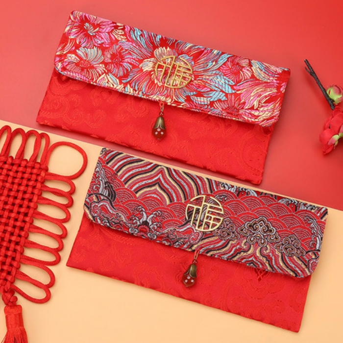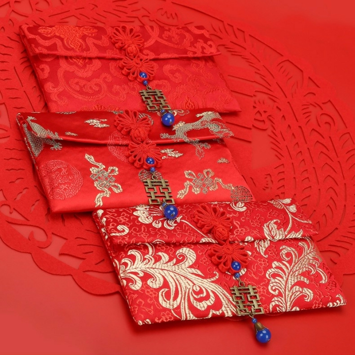 Bao lì xì vải gấm CHỮ HỶ cao cấp bao siêu to + tặng kèm 01 tệp giấy nhớ
