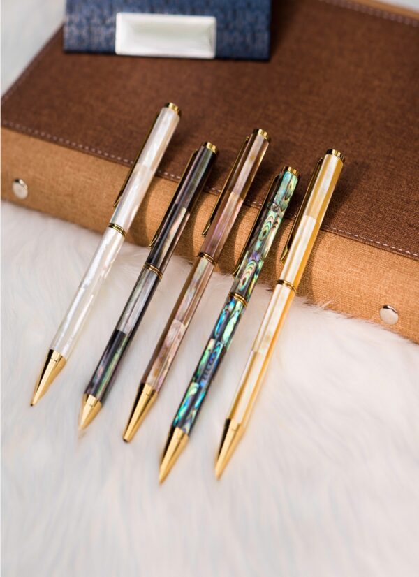Bút Xà Cừ được chế tác hoàn toàn thủ công bằng chất liệu vỏ bào ngư lâu năm từ Úc, Nhật, trải qua hơn 20 công đoạn để hoàn thiện. Vì thế mỗi cây bút sẽ sở hữu những hoa văn độc nhất.