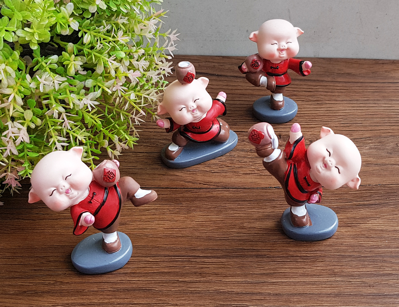 Bộ 04 chú Túy Quyền Hợi kèm chân đế ngang 5 ánh vàng và chum vàng nhiều mẫu