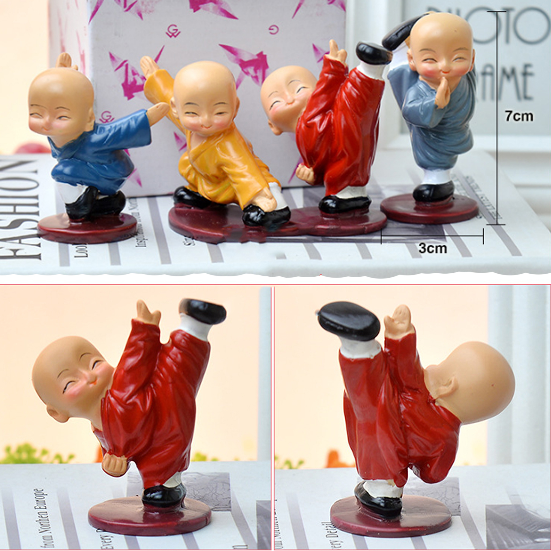 Bộ tượng 4 chú tiểu múa võ được nhiều người yêu thích trang trí taplo ô tô, bàn làm việc của mình. Bộ tượng khắc họa hình ảnh 4 chú tiểu với 4 thế võ khác nhau vô cùng vững chãi, khỏe mạnh và ngộ nghĩnh đáng yêu.