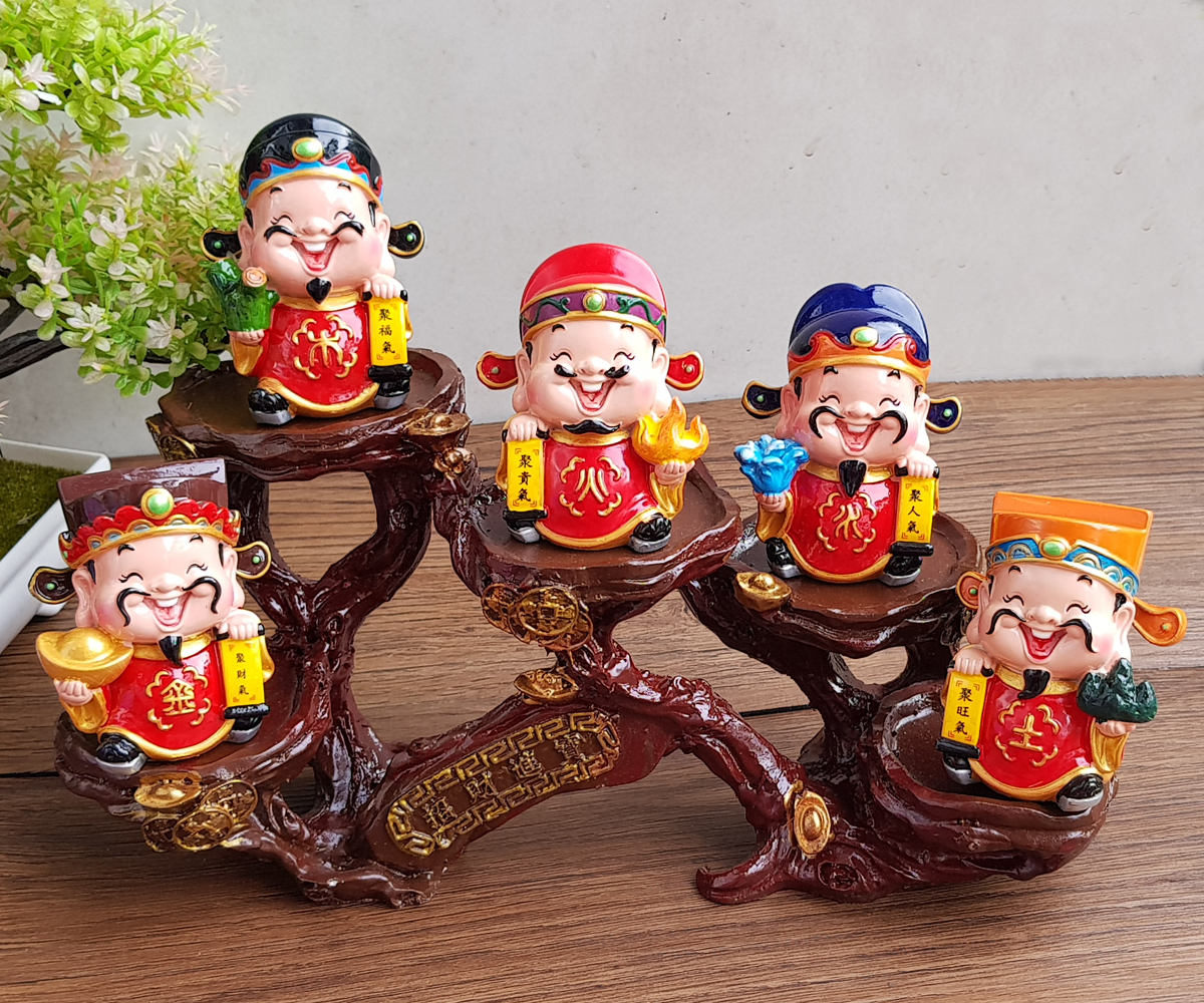 Bộ 05 tượng Ngũ Hành size 7.5cm bằng sứ cao cấp kèm chân đế ngang 5 ánh vàng