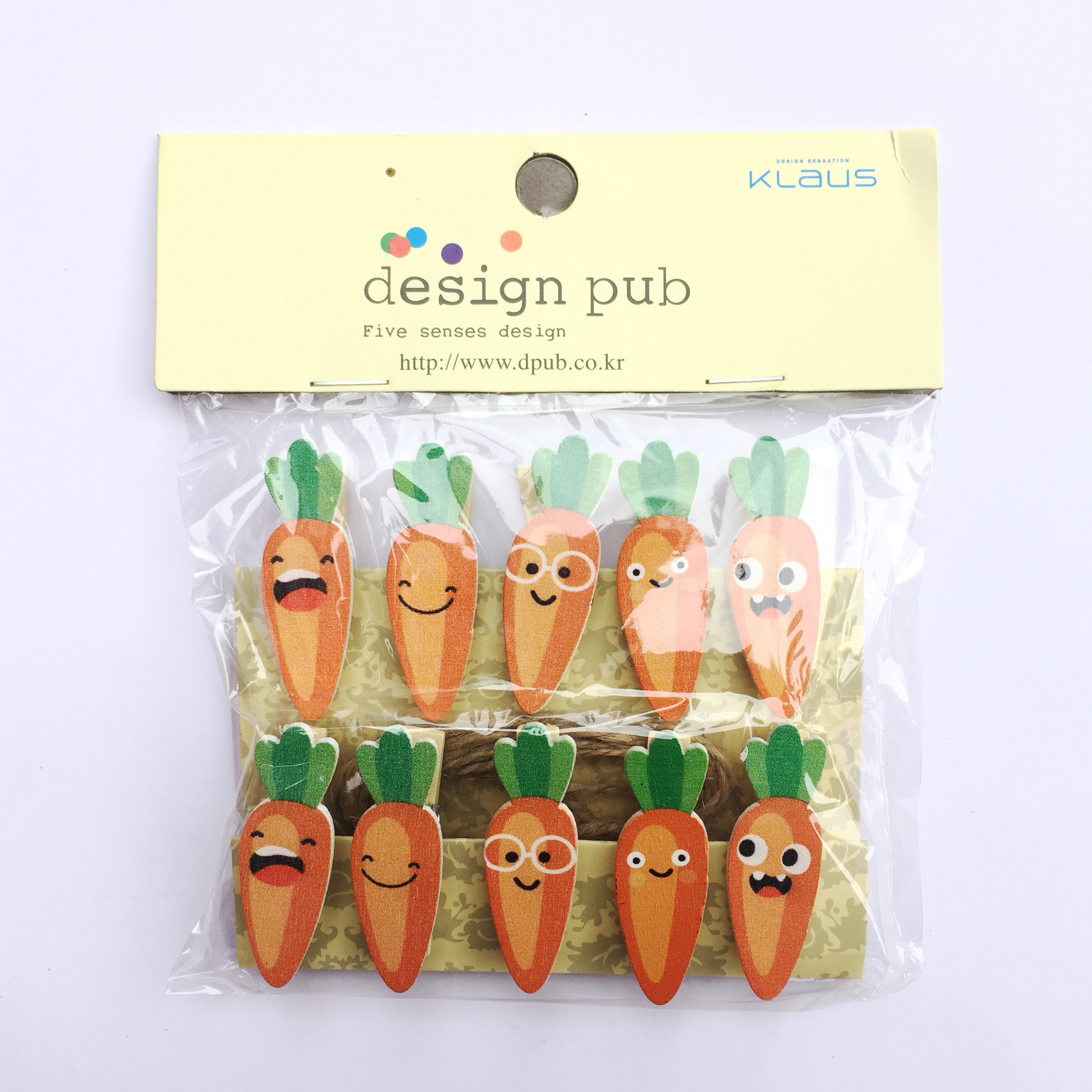 Bộ gồm 10 kẹp ảnh gỗ hình củ cà rốt