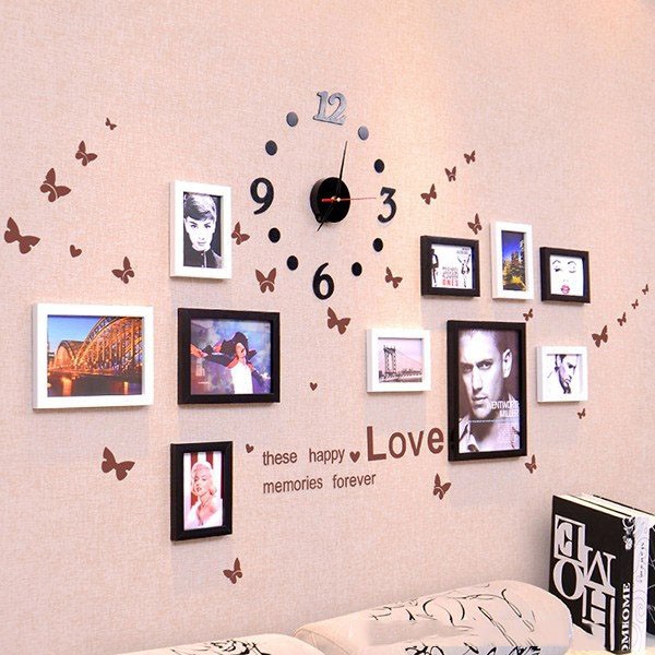 Bộ 10 Khung ảnh Treo Tường Phòng Ngủ kèm đồng hồ, decal KA1001 Và phụ kiện