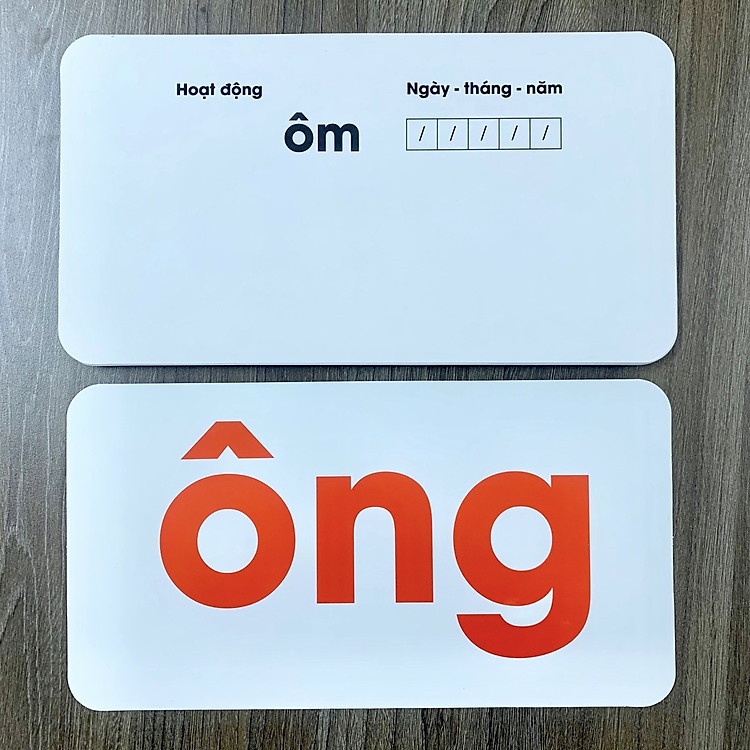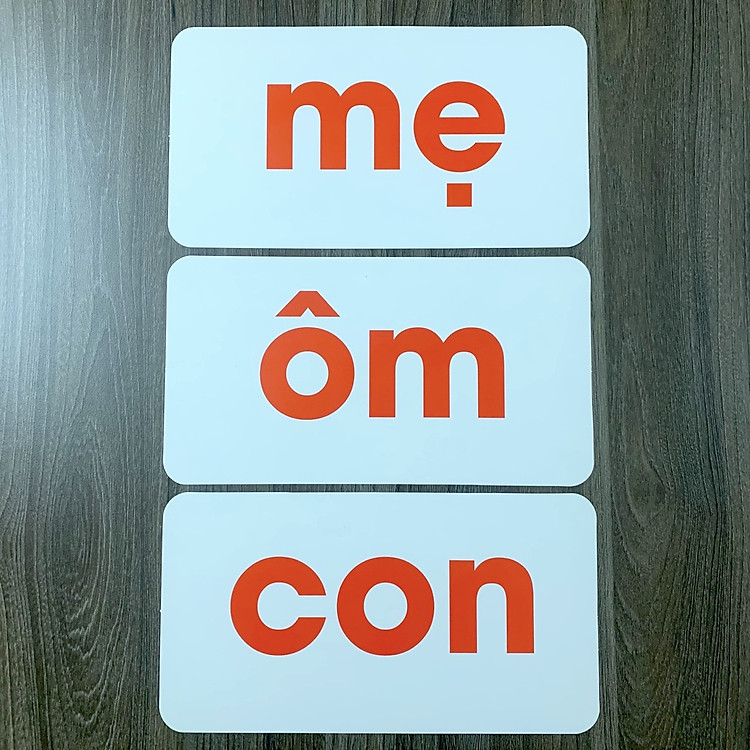 Mặt trước là thông tin chữ to màu đỏ dành cho bé khi mẹ dạy; chữ cao nhất khoảng 7,5-8cm.