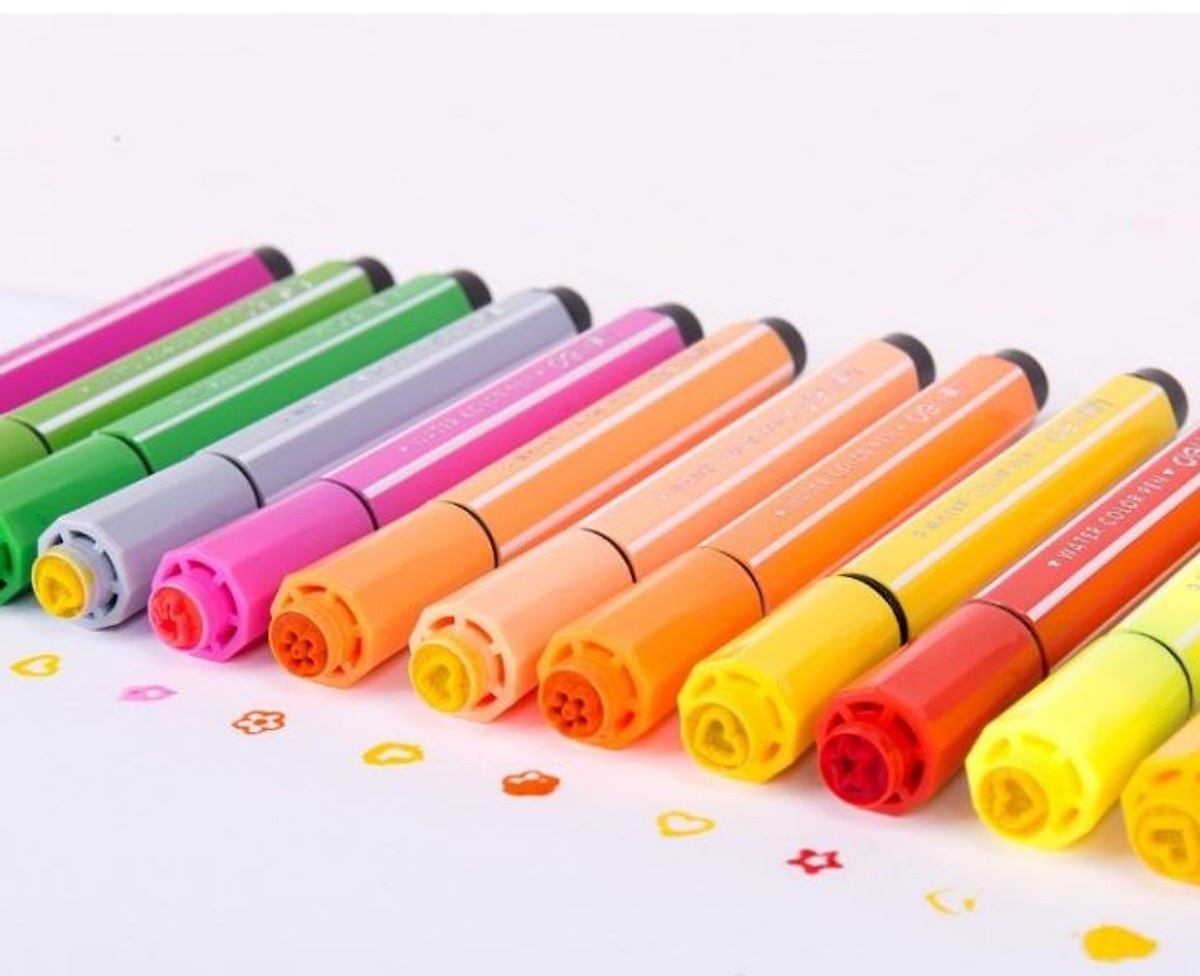 - Bộ 12 bút lông màu kèm tem đóng là sự kết hợp hoàn hảo những ưu điểm nổi bật của màu nước và màu dạ quang, cho khả năng tạo ra những hiệu ứng màu sinh động và vô cùng rực rỡ.