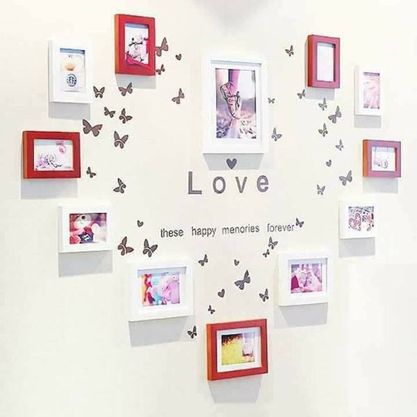 Bộ 12 Khung ảnh Composite Treo Tường Hình Trái Tim Lãng Mạn KA1205. và phụ kiện, decal