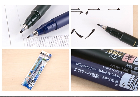 Đồ của Nhật đóng gói khỏi chê, riêng cái túi đã thấy xịn rồi. Bút viết rất thích, mực ra đều đậm, test trên sổ của Crabit lẫn giấy nháp, bìa các tông đều rất dễ viết. Bút màu xanh là ngòi cứng, bút đen là ngòi mềm nhưng cảm thấy rất dễ viết chứ không khó như brush. Mực khô nhanh, không sợ bị lem kể cả kẻ. Giá thành hơi cao, hi vọng sẽ sử dụng được lâu.