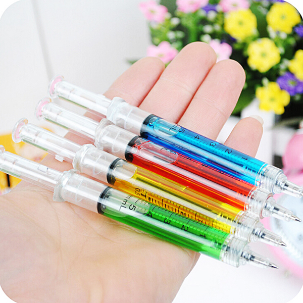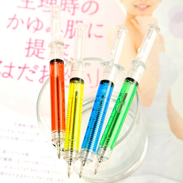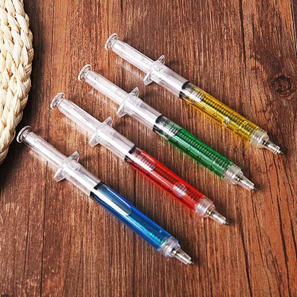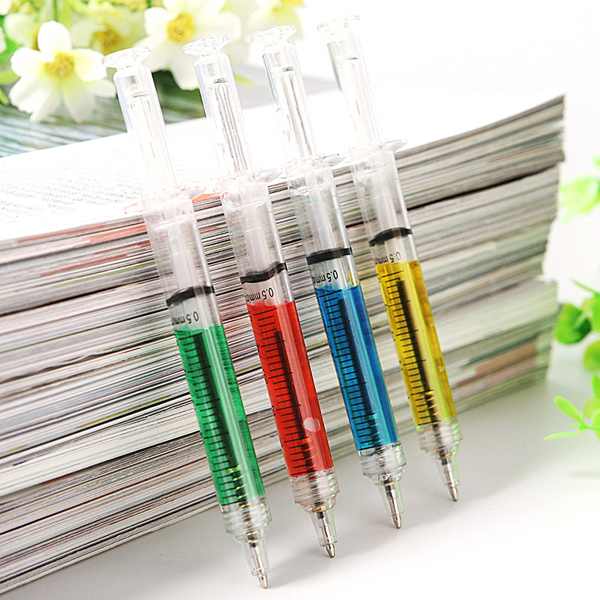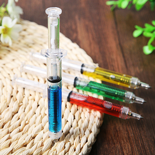 - Thiết kế sáng tạo trong hình dáng một cây ống chích sẽ làm nên cá tính khác biệt của bạn so với mọi người. Sản phẩm nhỏ gọn có thể cùng bạn đi bất cứ nơi đâu. Bút bi hình ống chích với chiều dài 12.5 cm làm bằng nhựa ABS/AS có nhiều màu nước để bạn lựa chọn.