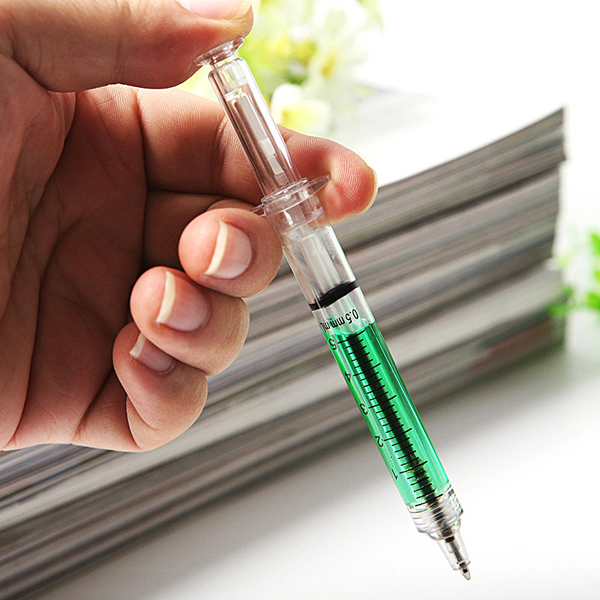 - Viết bi hình ống chích - chắc chắn bạn bè và người xung quanh sẽ một cơn hú vía vì trên tay bạn cầống tiêm! Nhưng đừng sợ, nó sẽ không hại đâu, chỉ là cây viết thôi mà Ngộ nhỉ, thật độc đáo với viết bi hình ống chích.