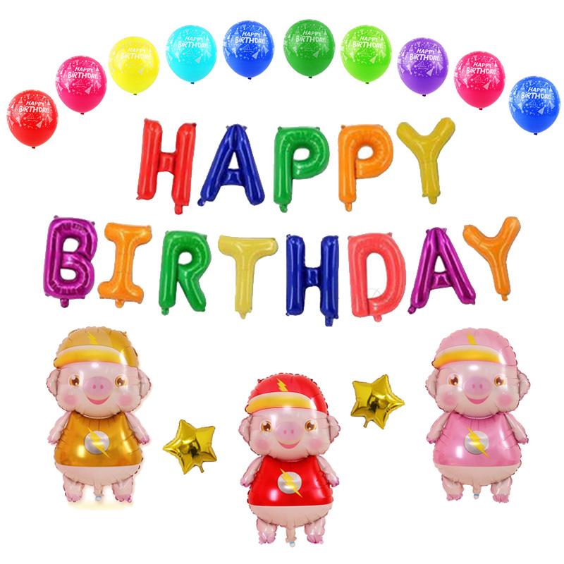 Bộ bong bóng sinh nhật heo tia chớp Là phụ kiện trang trí sinh nhật không thể thiếu cho bé Gồm: Bộ bong bóng chữ Happy Birthday.Hai ngôi sao nhỏ 20 cm.Ba bé heo tia chớp 60cm.10 bong bóng cao su...