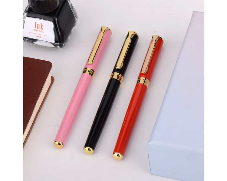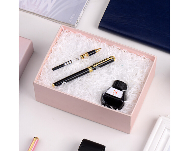 - Bộ Quà Tặng Bút Máy Mạ Vàng + Ruột Bút Dự Phòng + Hộp Mực DUKE: Bút máy: Ngòi bút được làm từ thép không gỉ được đánh bóng, cho nét viết êm ái, nhẹ nhàng, mực luôn ra đều và đẹp. Thân bút có các rãnh nhỏ giúp việc cầm bút dễ dàng, không bị trơn trượt.