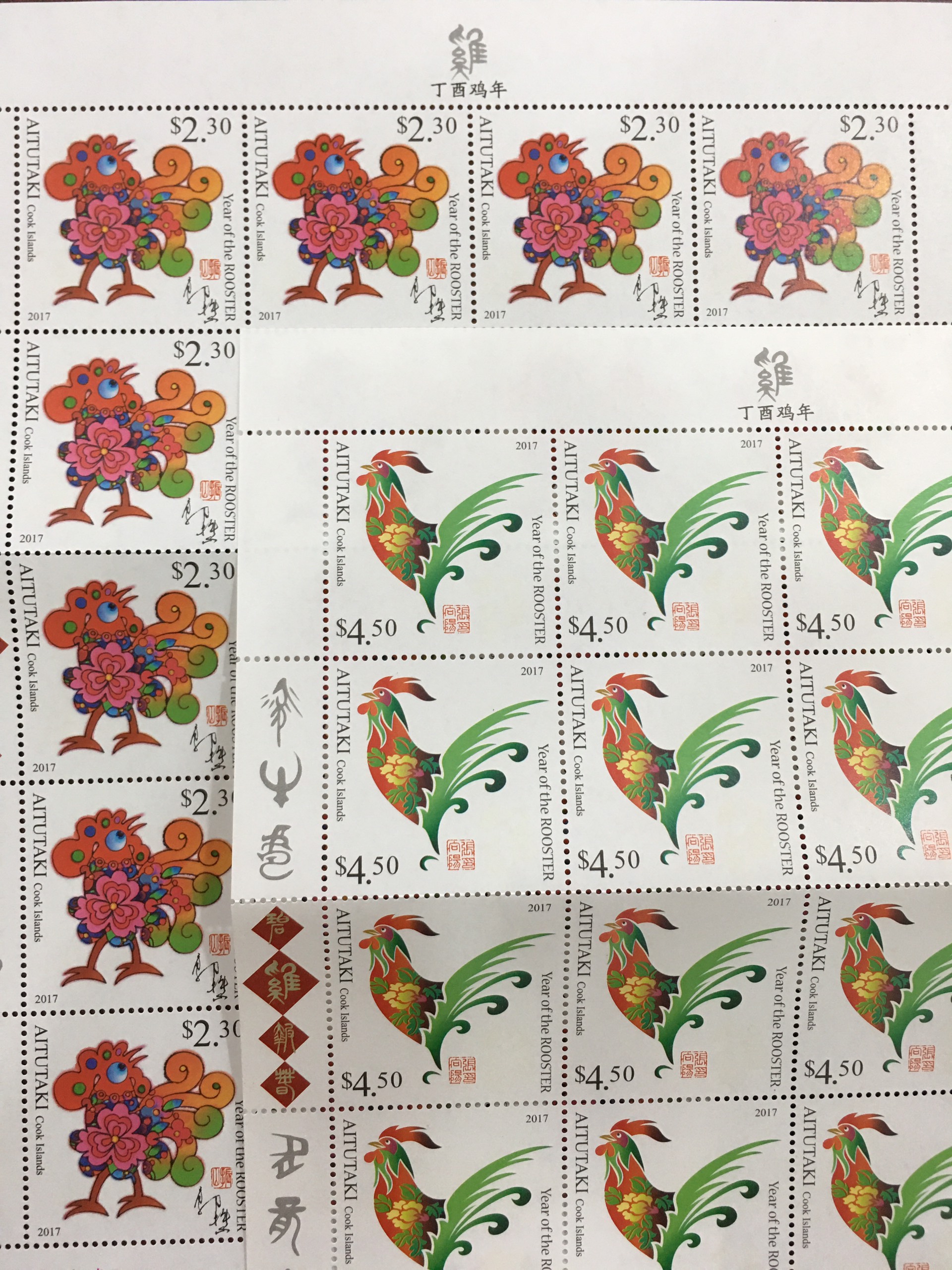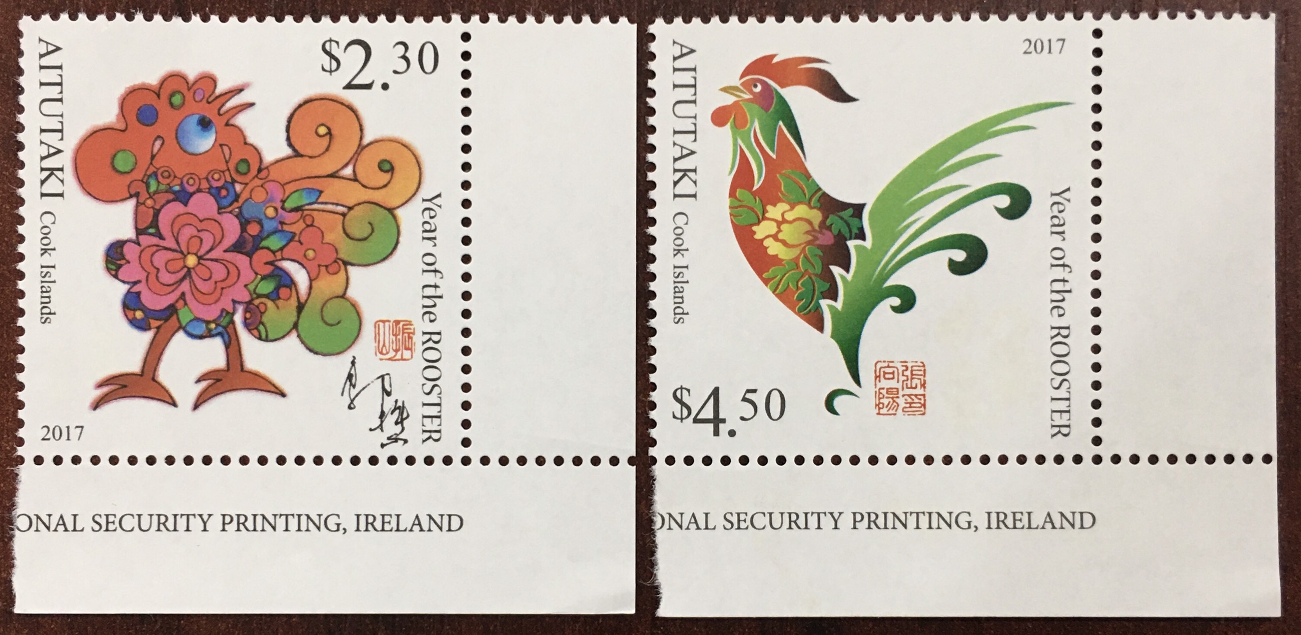 Bộ Tem Sưu Tầm Đảo Cook Aitutaki Chủ Đề Tết Con Gà Năm 2017 - 2 Con Stamps
