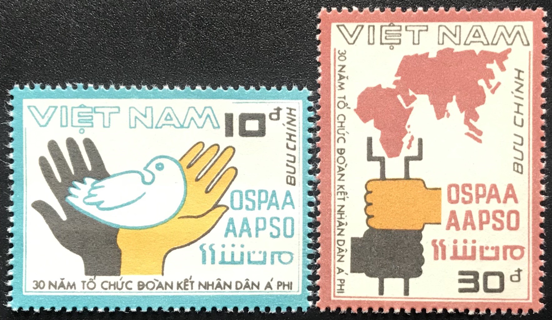 Bộ tem sưu tầm Việt Nam chủ đề kỷ niệm 30 năm tổ chức đòan kết nhân dân Á - Phi 2 con