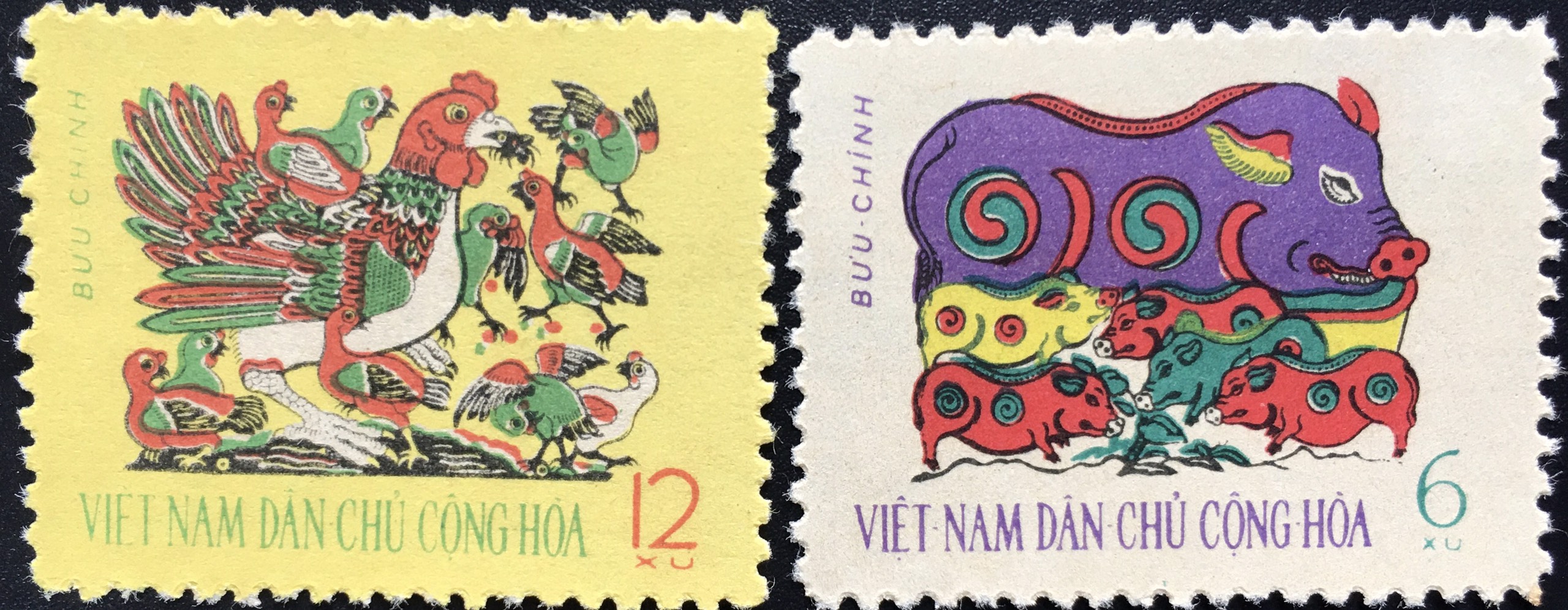 Bộ Tem Sưu Tầm Việt Nam Tết Con Lợn và Con Gà - 2 Con Stamps