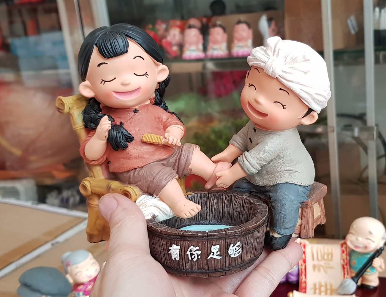 Bộ tượng cặp đôi rửa chân dễ thươngKích thước: ngang 15cm x rộng 9cm x cao 11cmChất liệu: composite cao cấp