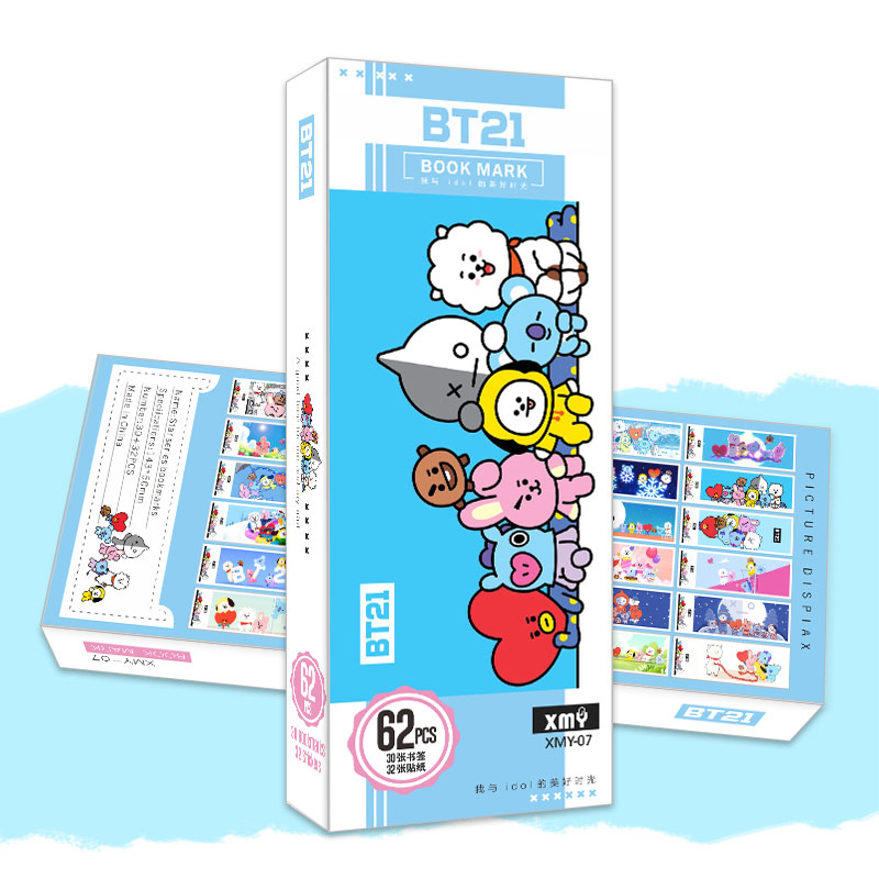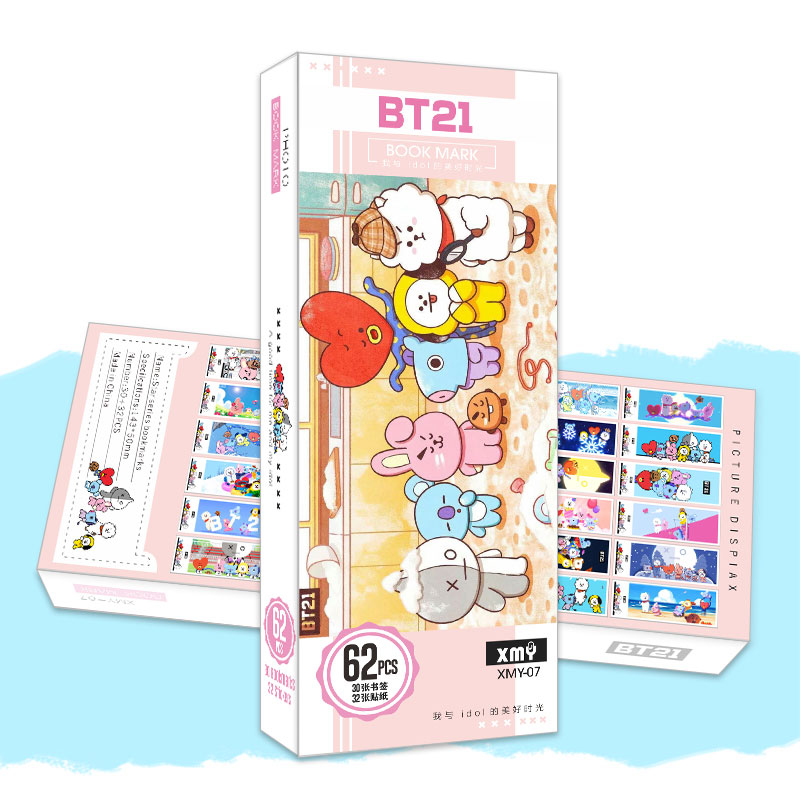 Hộp bookmark Bt21 gồm 62 tấm
