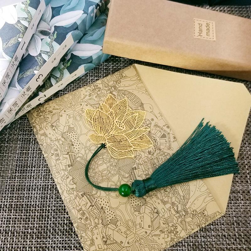 Bookmark HOA SEN cổ trang kim loại mỏng đánh dấu trang phong cách cổ trang