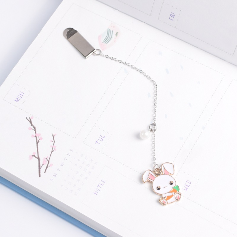 Bookmark Kẹp Sách Kim Loại Phối Charm Hình Thỏ Trắng