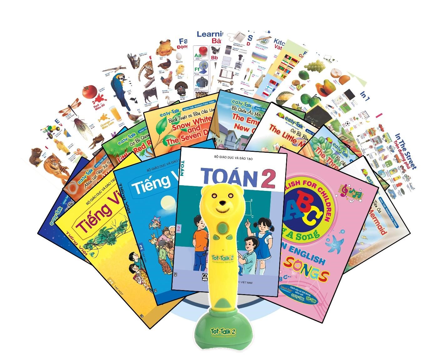 Đi kèm với bút chấm đọc Tot-Talk 2 là đa dạng bộ sách phù hợp với mọi lứa tuổi, hỗ trợ các bé học tiếng Anh trên ở trường theo sách giáo khoa và các sách tiếng Anh chuyên dùng.