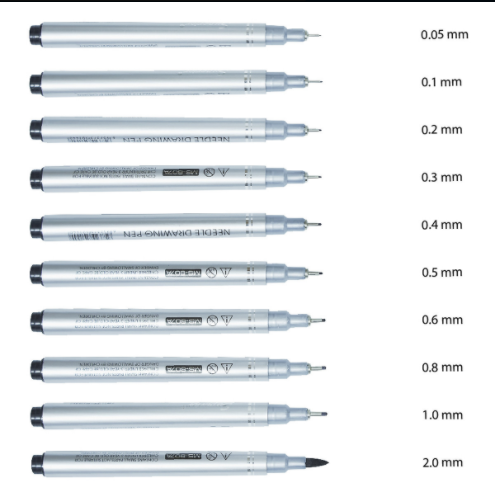 Bút có nhiều kích cỡ khác nhau có thể tạo ra nhiều nét vẽ đa dạng từ nét mảnh cho đến nét dày