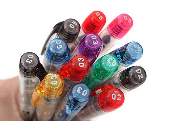 - Bút có 3 cỡ ngòi. Cỡ 0.3 thích hợp với các bé tiểu học hoặc nhu cầu viết hàng ngày. Cỡ 0.2 cho những bé viết bị ấn mạnh hoặc nhu cầu viết chữ mảnh. Ngòi 0.5 cho ra nét đậm.