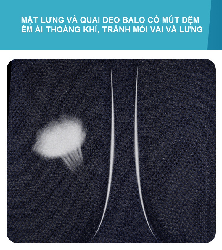 – Mặt lưng và Quai đeo có kết cấu dày dặn với lớp đệm mút xốp êm ái kèm vải lưới thấm hút mồ hôi tạo cảm giác thông thoáng, giúp bé luôn thấy thoải mái và dễ chịu dù đeo ba lô trong nhiều giờ liền. Nhà sản xuất đã vô cùng cẩn thận khi máy đính bọ quai đeo giúp mẹ yên tâm về độ bền chắc của quai