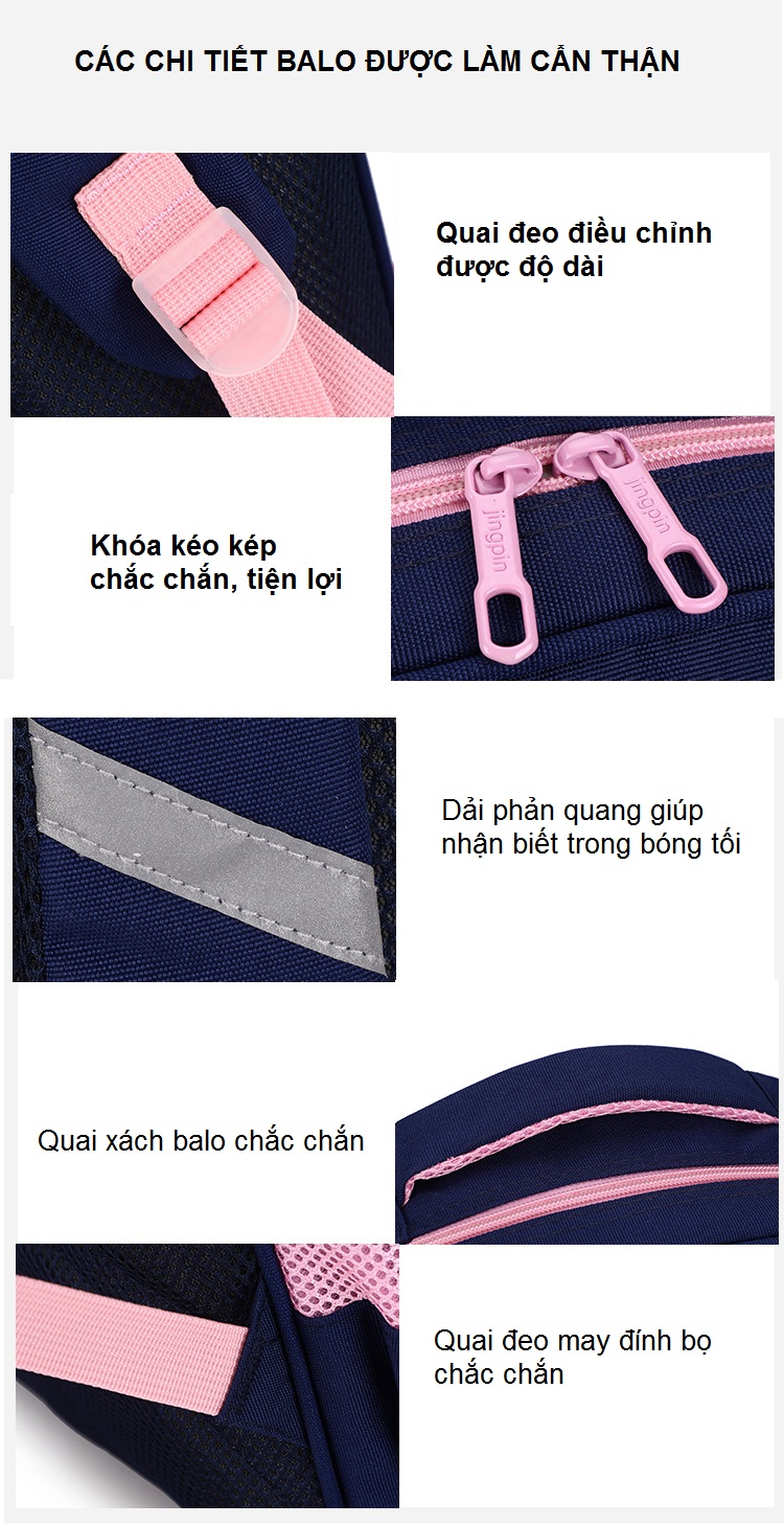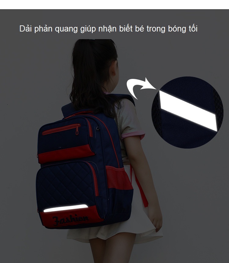 -Ba lô có dải phản quang giúp nhận biết bé trong bóng tối