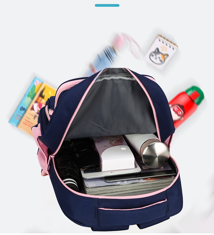 Cặp Học Sinh, Balo Đi Học Chống Thấm, Có Dải Phản Quang, Nhiều Ngăn Cho Bé Gái (41x30cm)