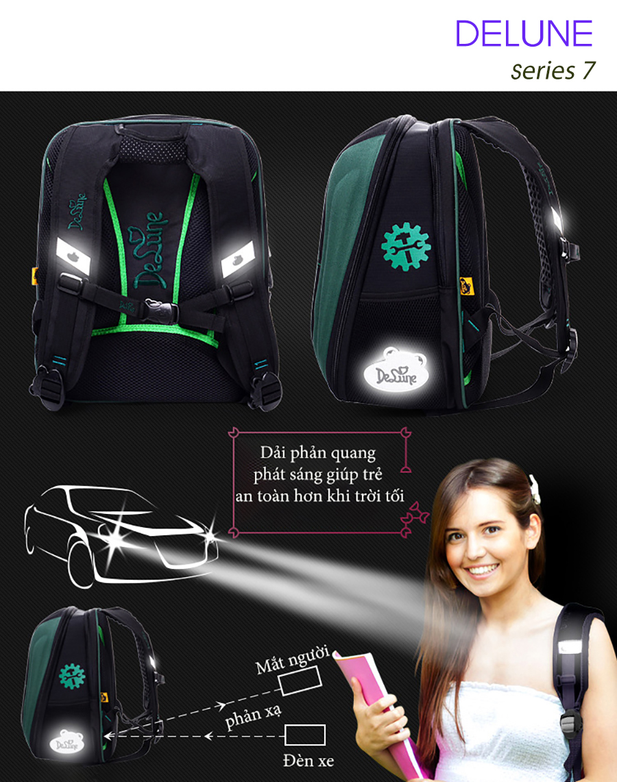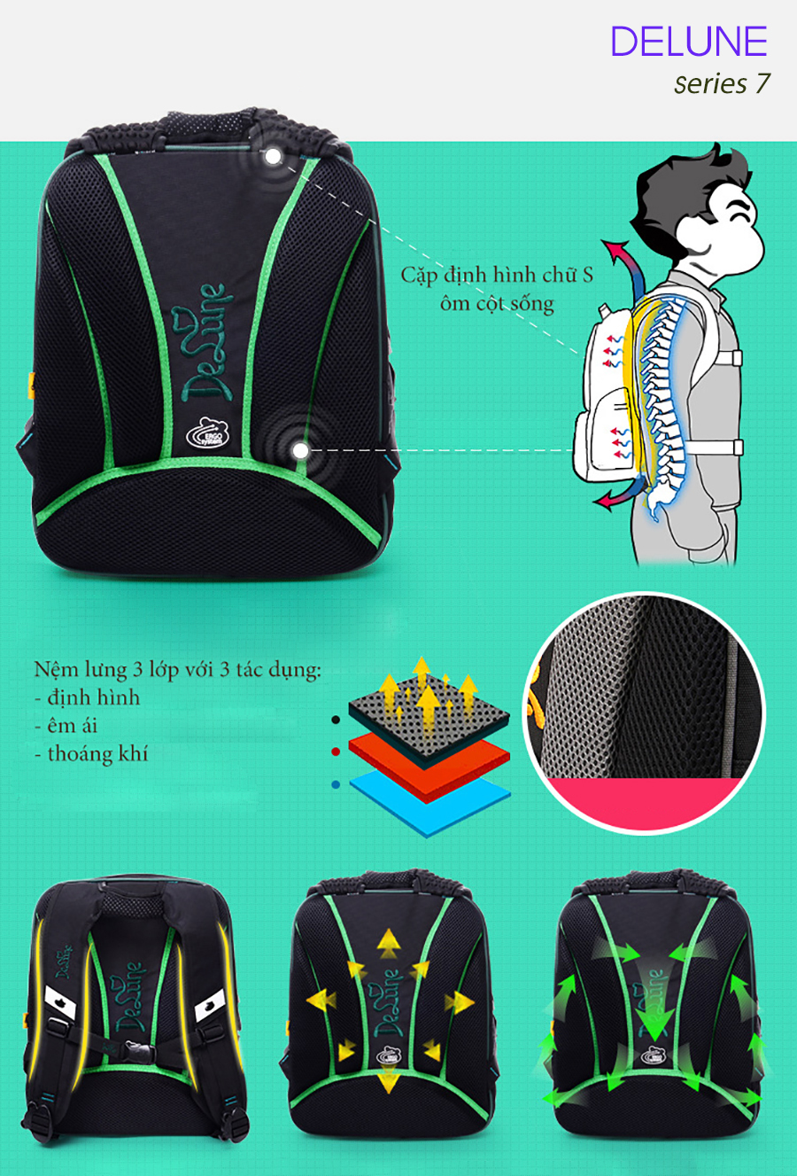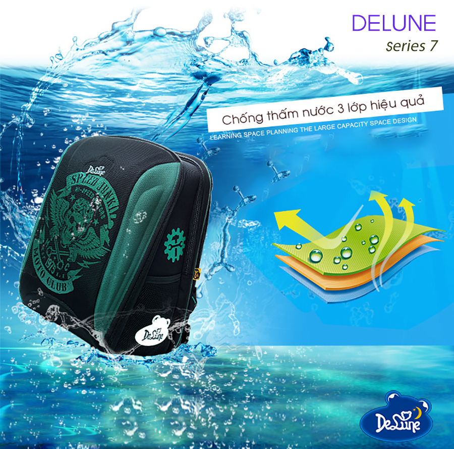 Cặp học sinh chống gù lưng Delune series 7 thuộc phân khúc cao cấp với chất liệu cứng cáp chống thấm nước, dập nổi họa tiết 3D đến từ thương hiệu Balo chống gù Delune (Russia)