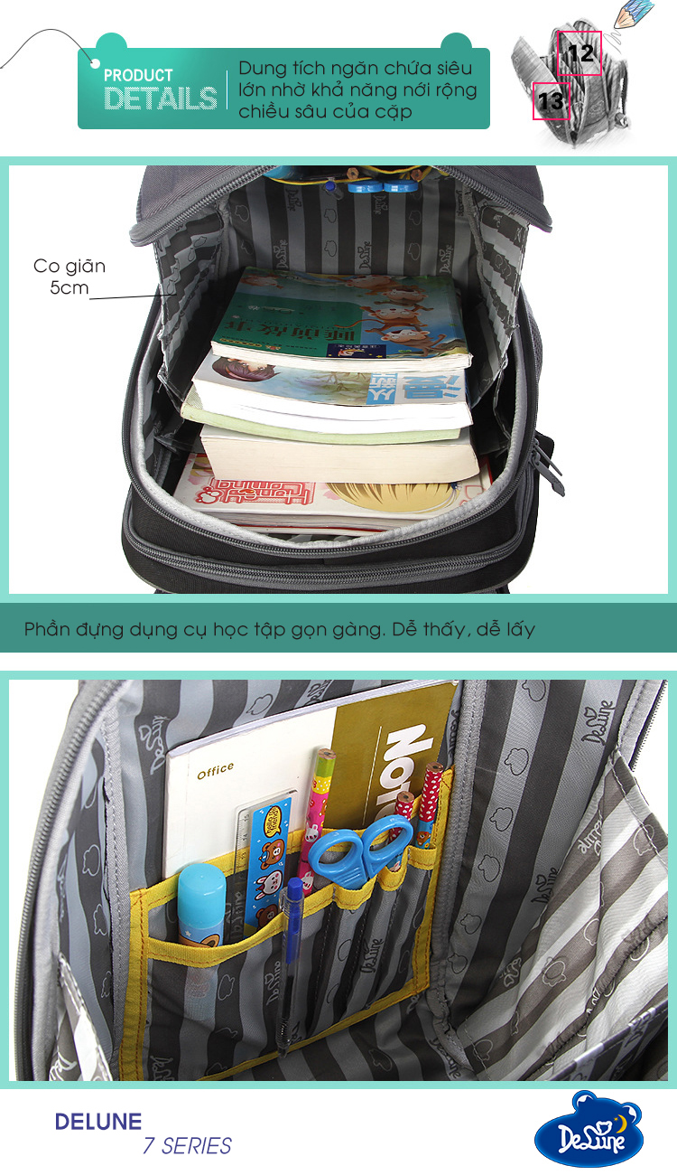Cặp học sinh chống gù lưng Delune series 7 thuộc phân khúc cao cấp với chất liệu cứng cáp chống thấm nước, dập nổi họa tiết 3D đến từ thương hiệu Balo chống gù Delune (Russia) Thiết kế phần...