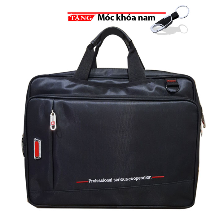 Cặp học sinh văn phòng đa năng Dù Xốp Thái viền thêu chỉ thời trang JJ12 tặng móc khóa nam