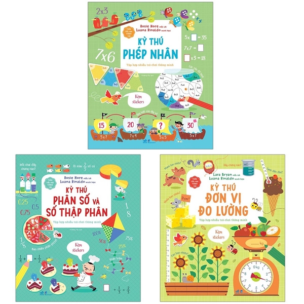 Combo 3 Cuốn: Toán Tiểu Học Tương Tác * Tập hợp nhiều trò chơi thông minh - Kèm stickers 3 CUỐN: Kỳ thú phép nhân Kỳ thú đơn vị đo lường Kỳ thú phân số và số thập phân Tác giả: Rosie Hore - Lara...