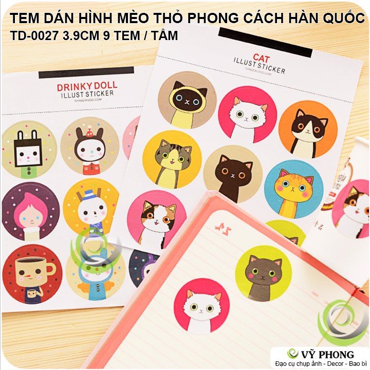 Mỗi tờ gồm 9 sticker nhỏ hình mèo siêu đáng yêu