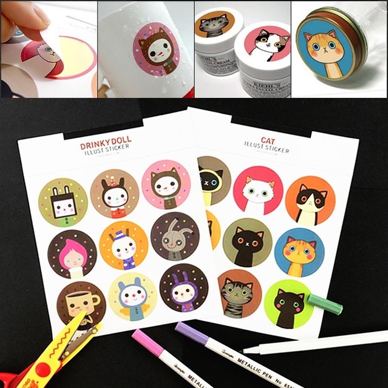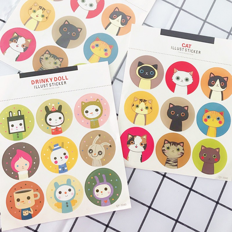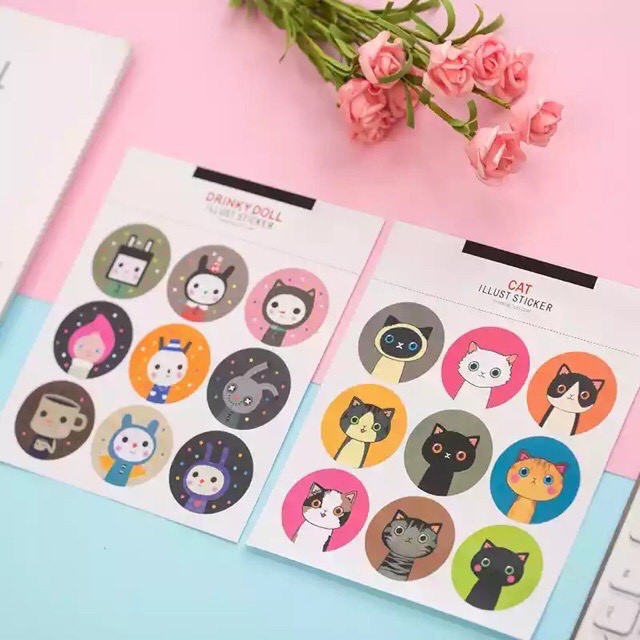 Sticker Cat Lllust gồm 45 sticker tròn lớn, thích hợp dùng để trang trí ly tách , tường …