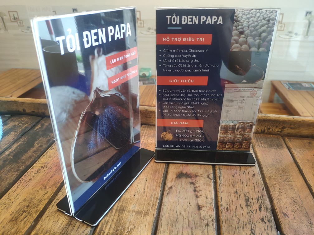 Bảng Menu Mica để bàn dùng làm thực đơn, vật dụng không thể thiếu trong quán của bạn. Menu Mica trong suốt, sử dụng được cả 2 mặt Được làm từ mica Đài Loan chất lượng cao Đường nét gia công tinh xảo...