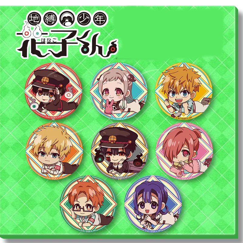Combo 8 huy hiệu JIBAKU SHOUNEN HANAKO-KUN - ÁC MA NHÀ XÍ HANAKO anime ver NẰM chibi
