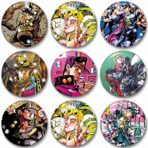 Combo 9 huy hiệu JOJO'S BIZARRE ADVENTURE - CUỘC PHIÊU LƯU KÌ BÍ anime - Sản phẩm Thích hợp làm quà tặng cho bạn bè và người thân- Ring ngay sản phẩm về bổ sung cho bộ sưu tập cosplay của bạn nhé-...