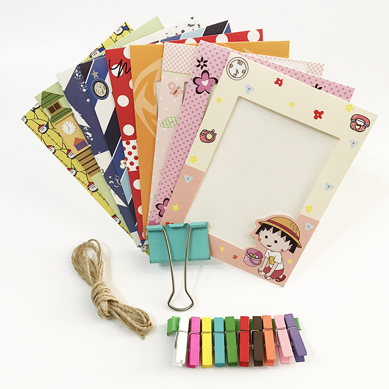 - Bộ gồm: 9 khung hình bìa + dây thừng + 9 kẹp gỗ