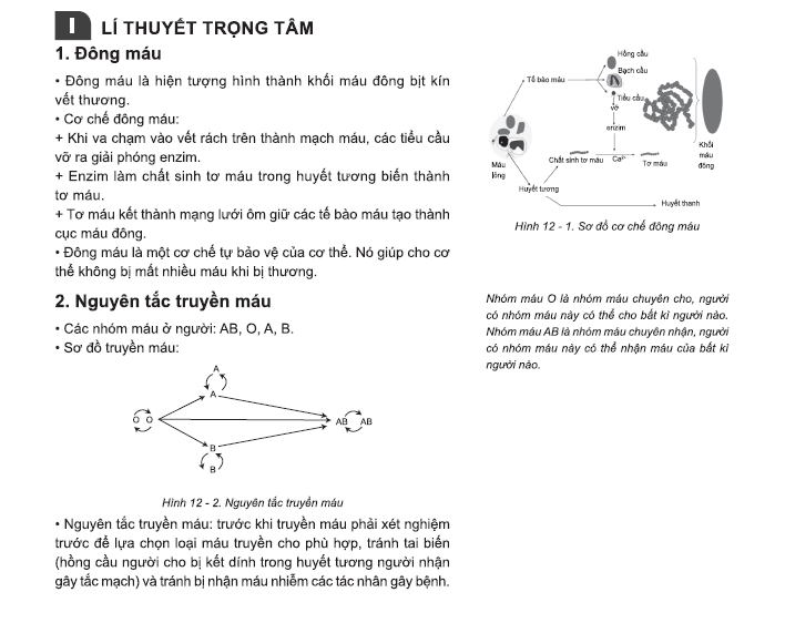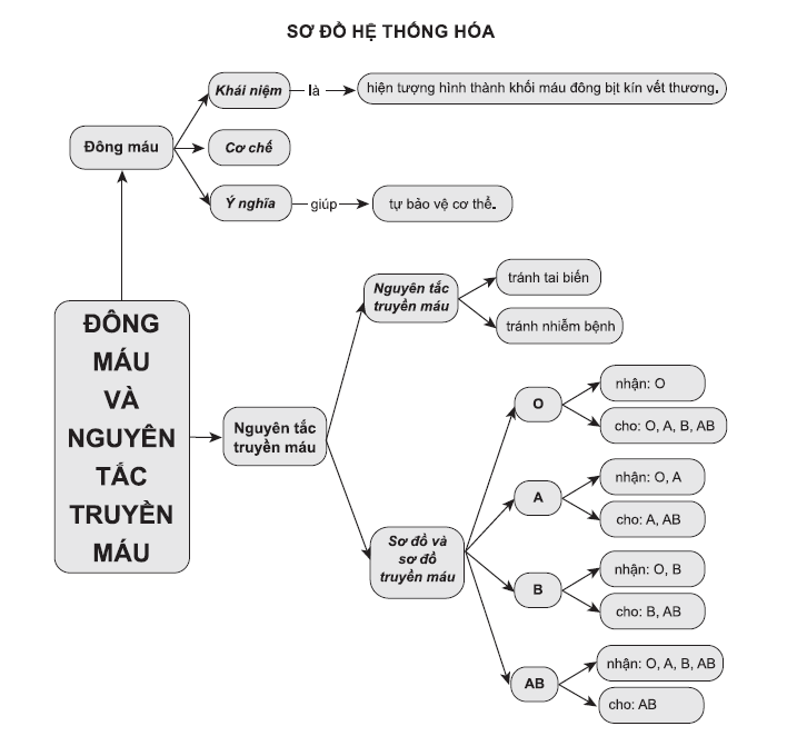 Sơ đồ hệ thống hóa lý thuyết về Đông máu và nguyên tắc truyền máu.