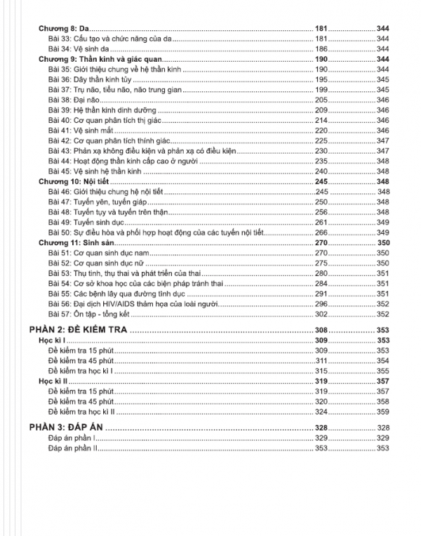 Nội dung kiến thức của môn Sinh học lớp 8 bao gồm 11 chương, mỗi chương được chia thành nhiều bài học.