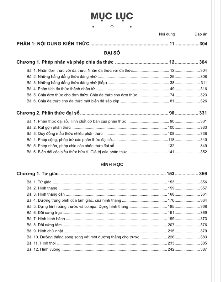Mục lục sách “Bí quyết chinh phục điểm cao Toán 8 – Tập 1”.